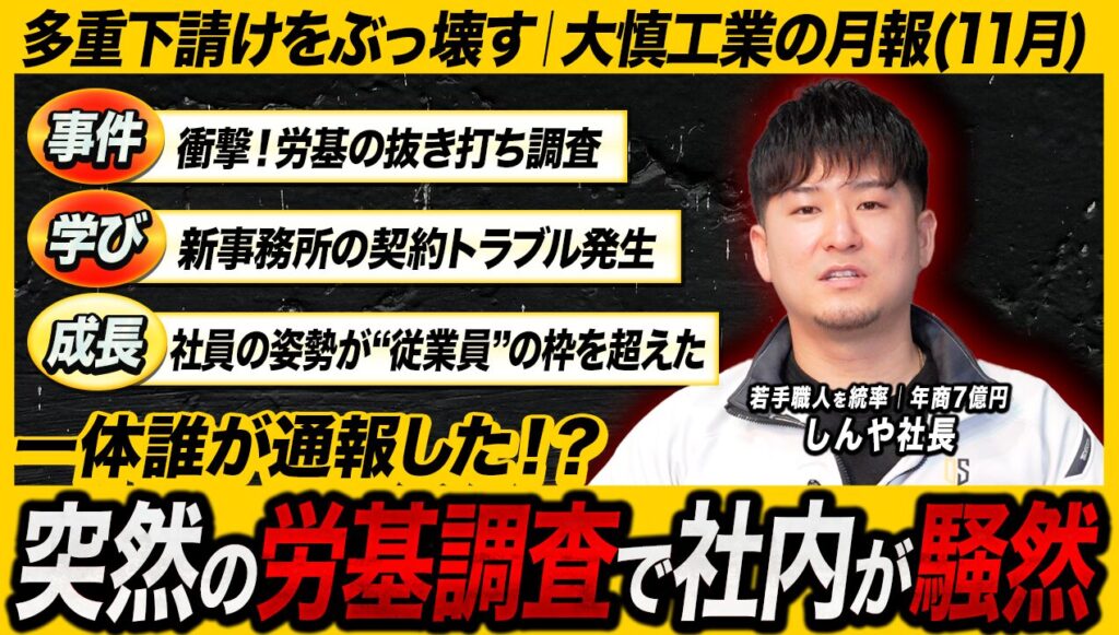 【YouTube配信】【大慎工業】抜き打ち労基&事務所契約が白紙寸前…「会社の体制」が試された1ヶ月【しんや社長】 を配信しました